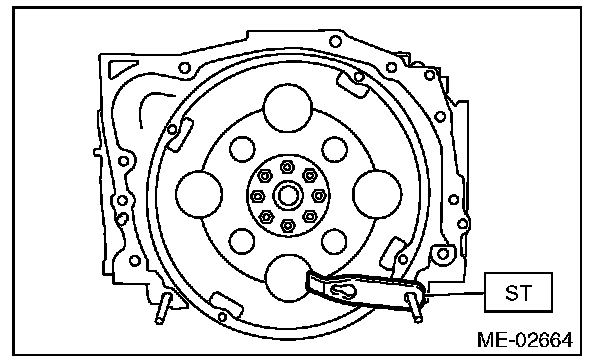9) Use the ST to lock the crankshaft, and remove the drive plate.