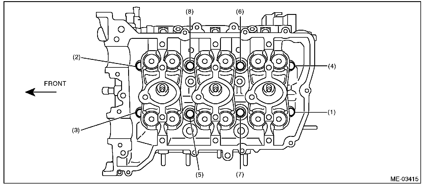 7) Tighten the bolts (5) - (8) in the order indicated with a torque of 44 Nm (4.5 kgf-m, 32.5 ft-lb).