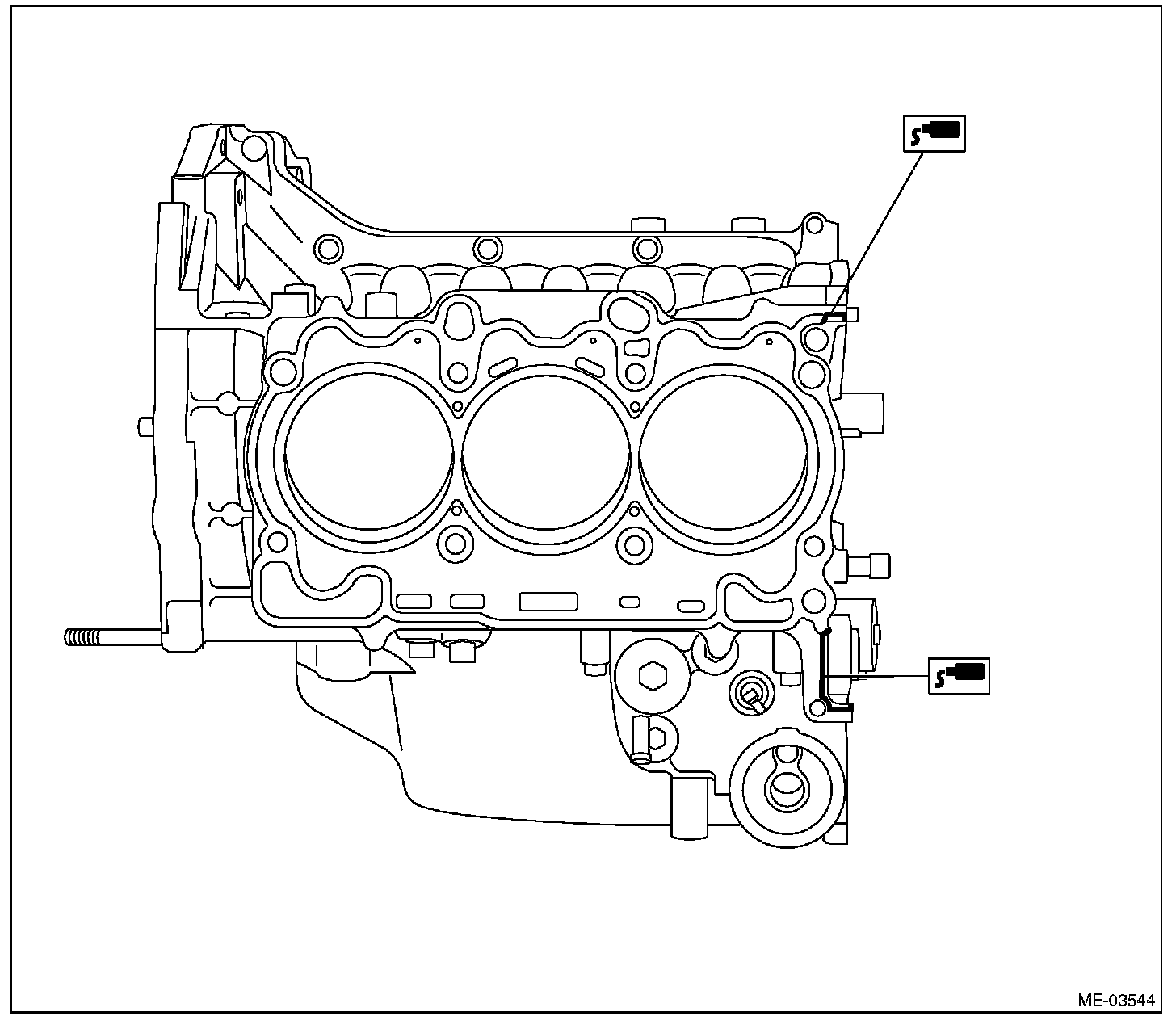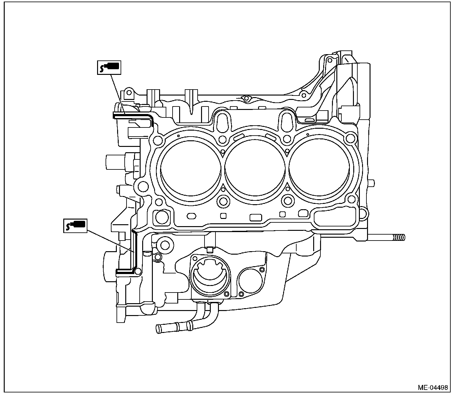 1) Apply liquid gasket to the mating surface of cylinder block shown in the figure.