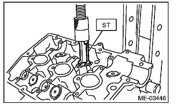 2) Insert the ST2 into valve guide and press it down to remove the valve guide.