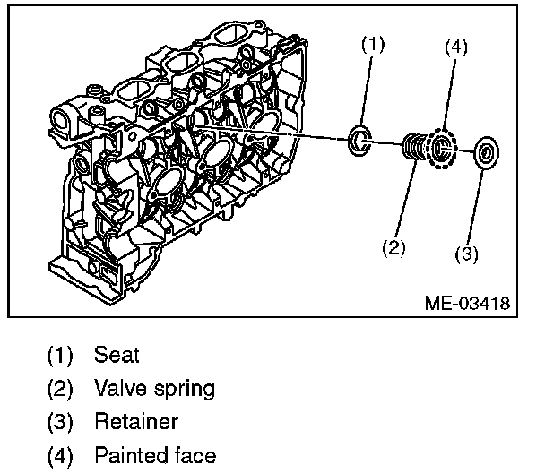 ^ Be sure to install the valve spring with its close-coiled end facing the seat on cylinder head.
