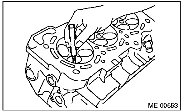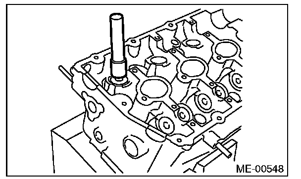 4) Before installing a new valve guide, make sure that neither scratches nor damages exist on the inner surface of valve guide holes in cylinder head.