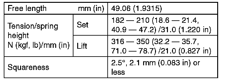 1) Check the valve springs for damage, free length, and tension. Replace the valve spring if it is not within the standard value presented in the table.