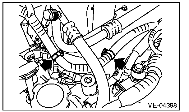 24) Install the heater inlet hose and heater outlet hose.