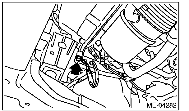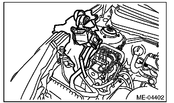 3) Use a cloth to protect the power steering pump and place it on the RH front strut using a wire.