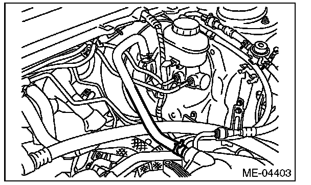 11) Remove the brake booster vacuum hose.