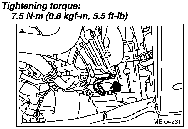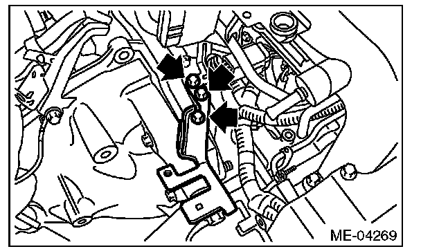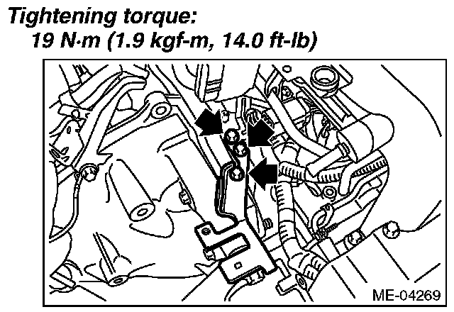 10) Attach the connecting bolts and nuts (lower side) between the engine and transmission.