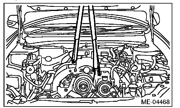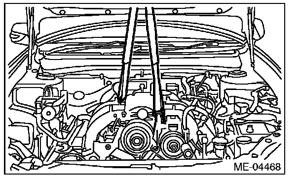Be careful not to damage adjacent parts or body panels with crank pulley, oil level gauge, etc.