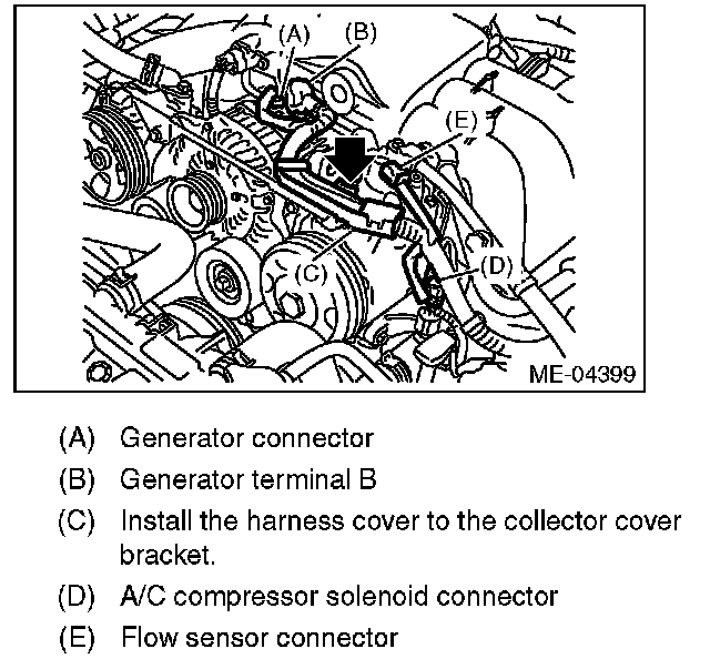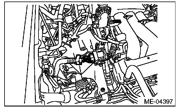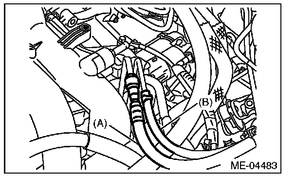 1) Disconnect the manifold absolute pressure sensor connector (A) and power steering pump connector (B).