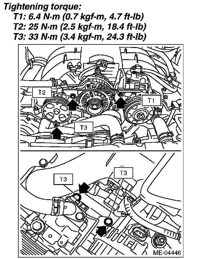 1) Install the power steering pump and power steering pump bracket to the cylinder block.