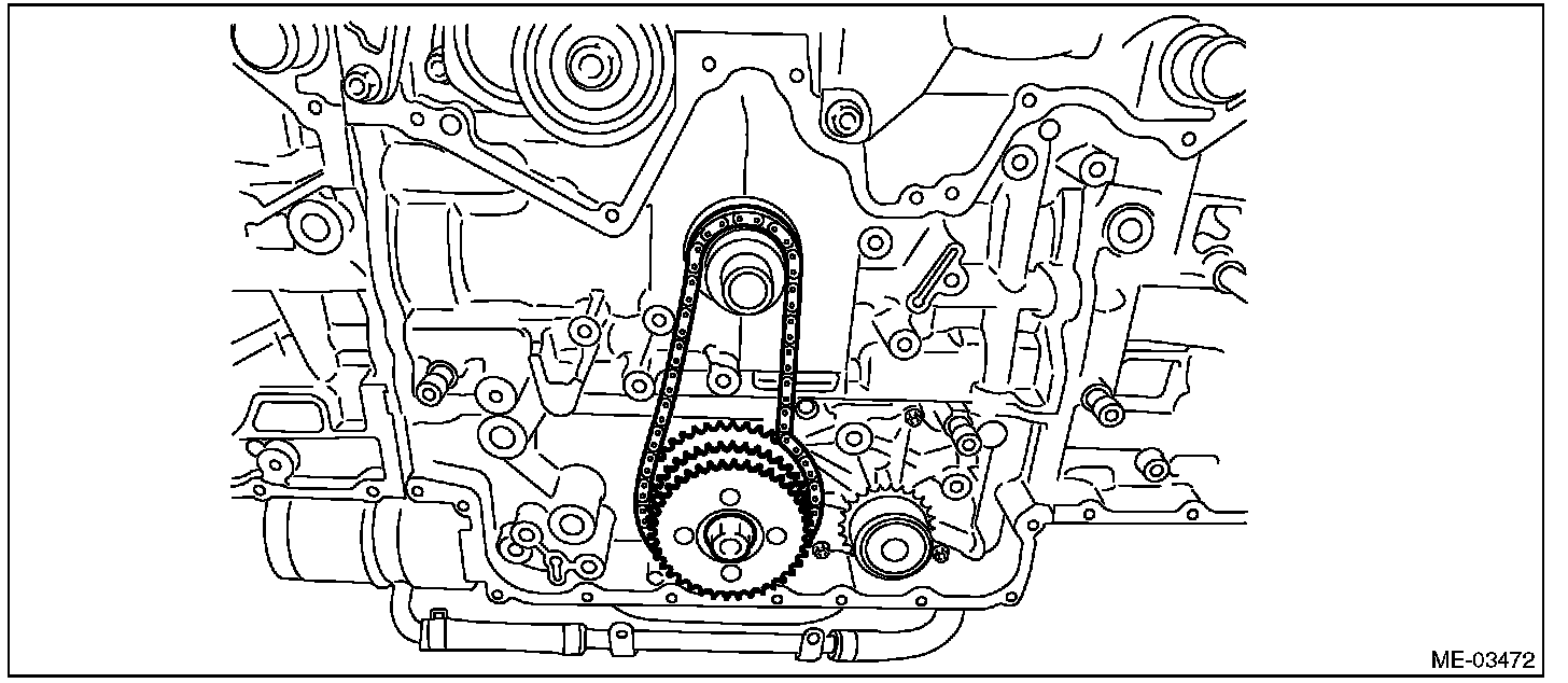 ^ Do not rotate the crankshaft and cam sprocket before completing timing chain installation.