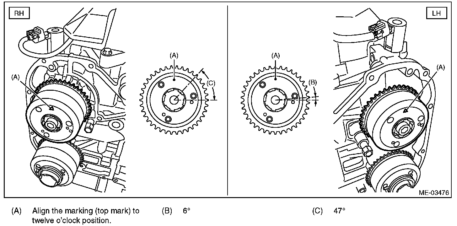 4) Align the intake cam sprocket to twelve o'clock position as shown in the figure.