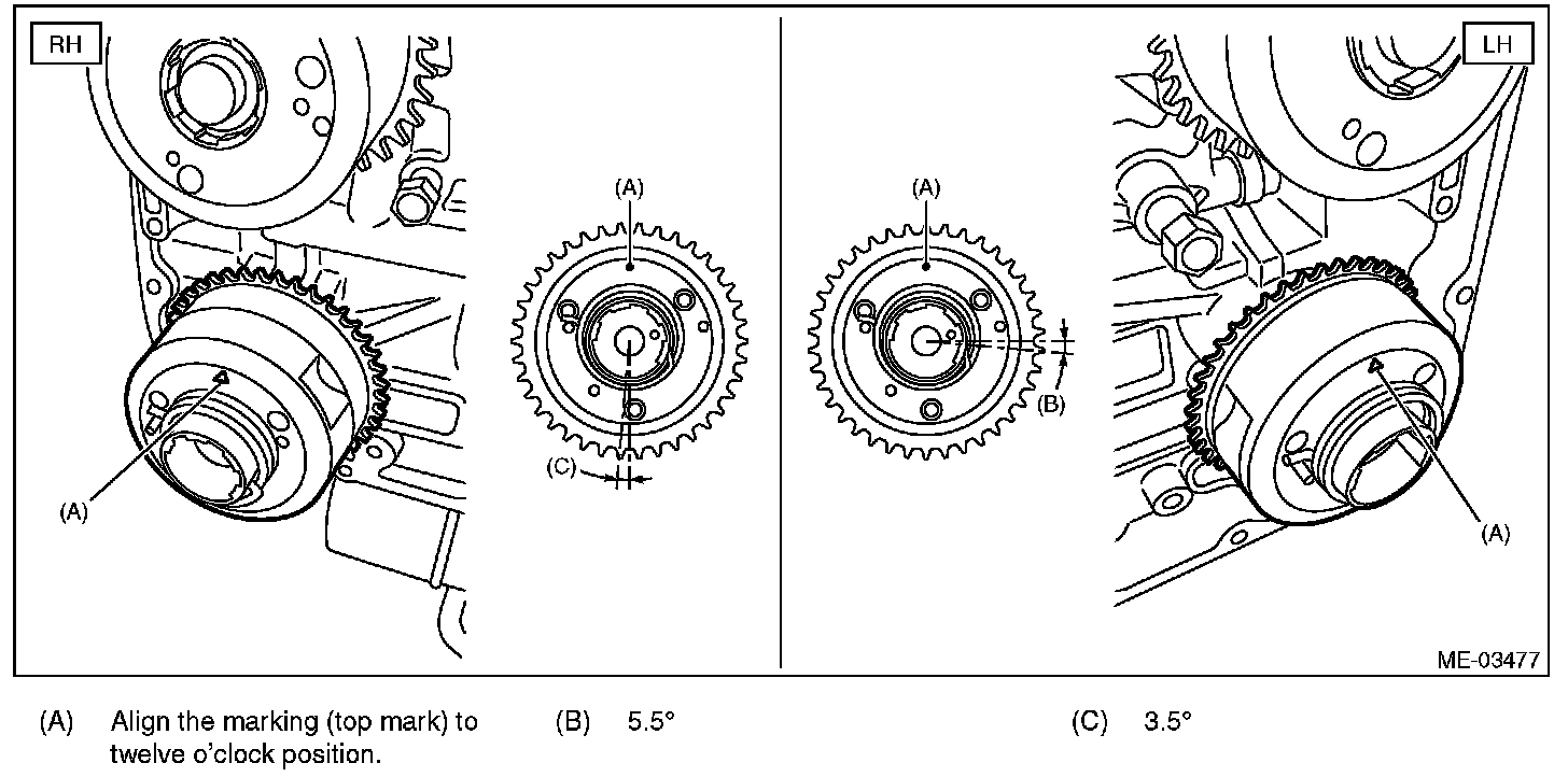 5) Align the exhaust cam sprocket to twelve o'clock position as shown in the figure.