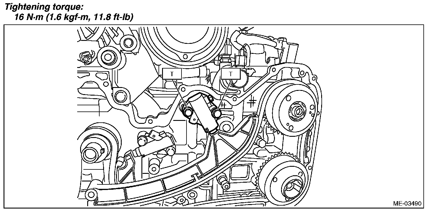 ^ Make sure that there is a bolt attached on the side face of the chain tensioner housing.