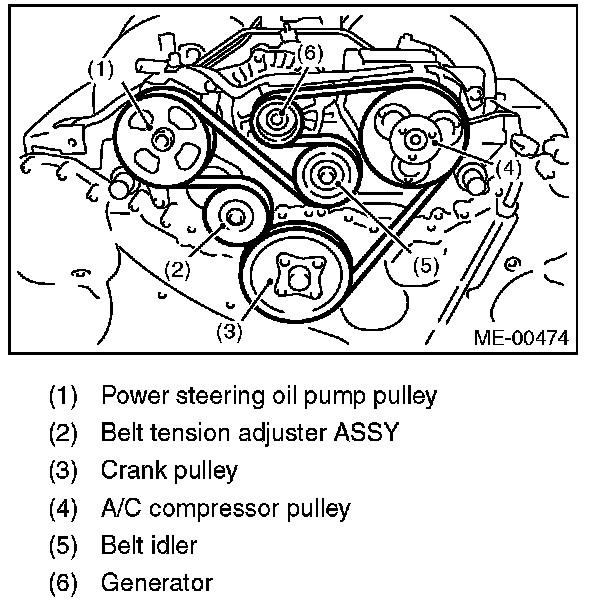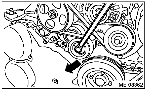 3) Install the tool to the pulley bolt of the belt tension adjuster assembly.