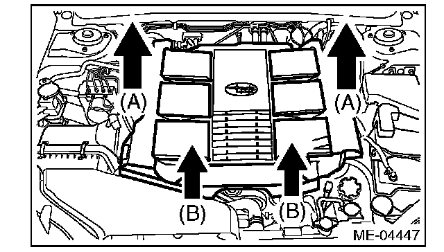 2) Pull up the two points at the front (B) while moving them forward.