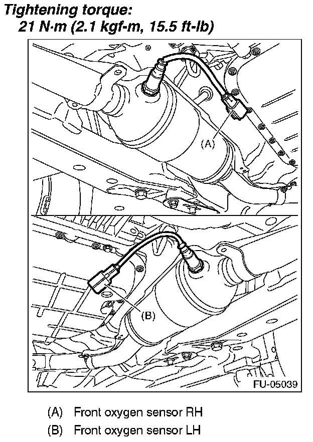 CAUTION: When removing the front oxygen (A/F) sensor, wait until exhaust pipe cools, otherwise it will damage the exhaust pipe.