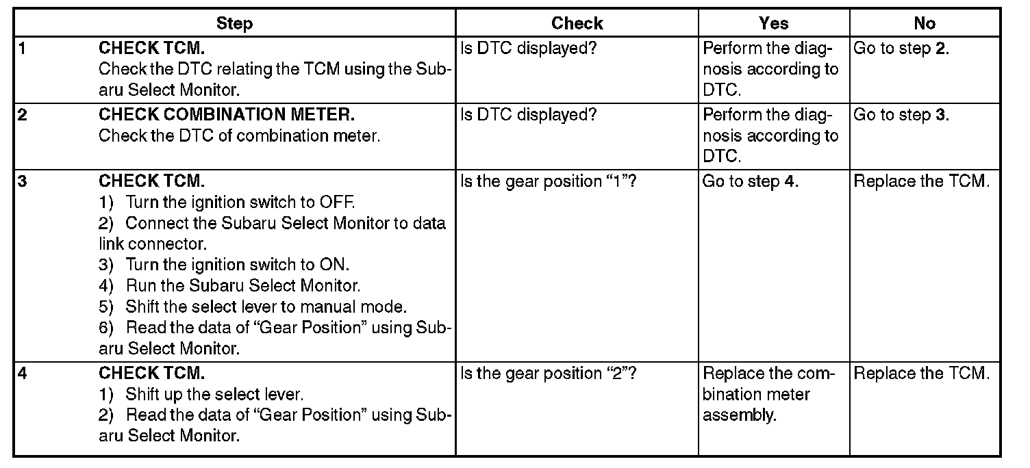 Diagnostic Procedure without Diagnostic Trouble Code (DTC)CHECK SHIFT INDICATOR