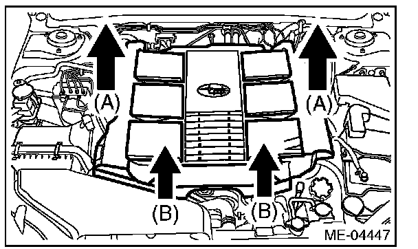 2) Lift up the front side holding two positions (B) while moving it in the forward direction of the vehicle.