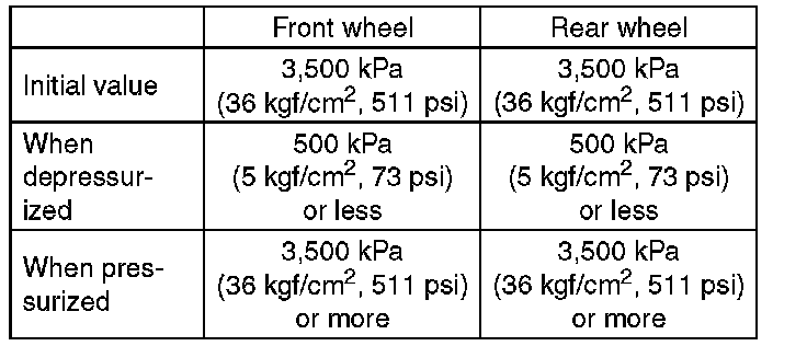 15) Read the values indicated on the pressure gauges and check if it is within specification. Depress the brake pedal and check that it is not abnormally hard, and tightness is normal.