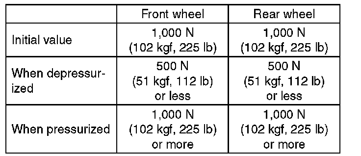 7) Read values indicated on the brake tester and check if the fluctuation of the values between decompression and compression meets specification.