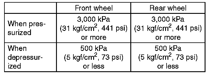 7) Read values indicated on the pressure gauge and check if the fluctuation of the values between decompression and compression meets specification. Depress the brake pedal and check that it is not abnormally hard, and tightness is normal.