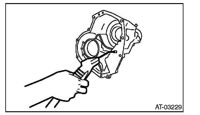 1) Take out the transfer clutch and rear drive shaft by lightly tapping the end of rear drive shaft.
