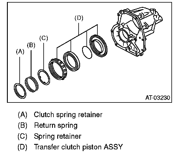 3) Insert the transfer clutch assembly, spring retainer, return spring and clutch spring retainer.