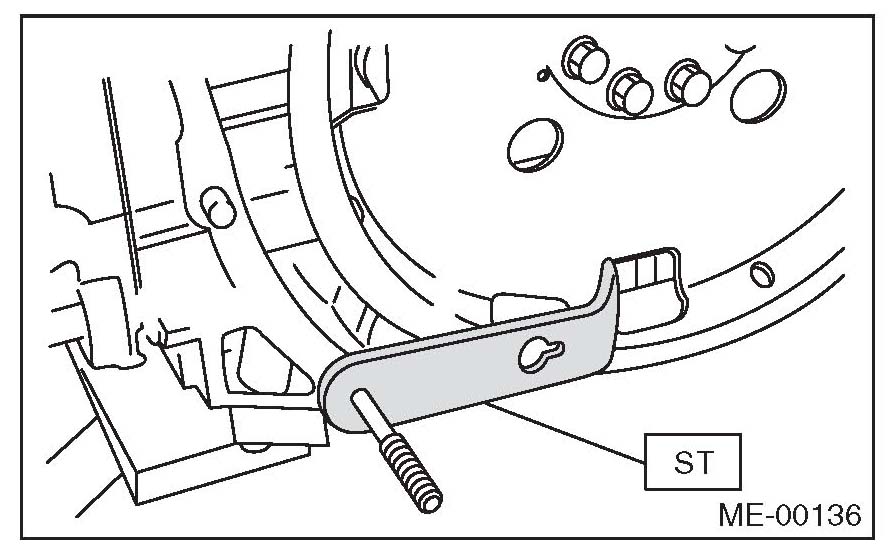 2) Using the ST, lock the crankshaft.