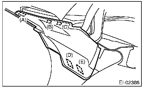 1. Detach tabs (A), (B), and (C) from the vehicle exterior.