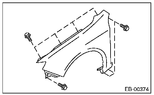 Install while paying attention to make a uniform clearance around the front fender panel. For the dimension of clearance, refer to "SPECIFICATION"