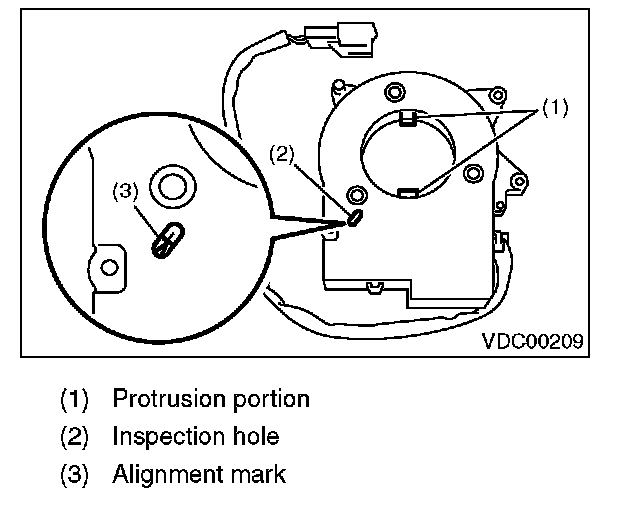 10) Turn the protrusion portion of new steering angle sensor to match the alignment mark of inspection hole.