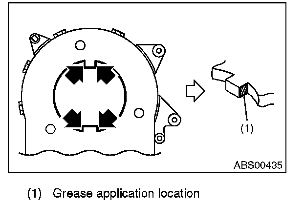 12) Apply the grease provided with the new part on the 4 locations of the protrusion on the steering angle sensor.