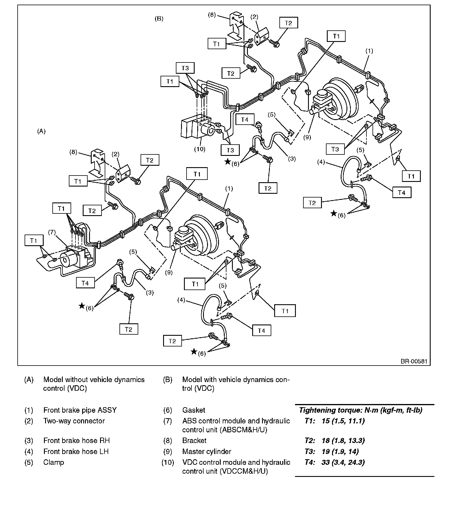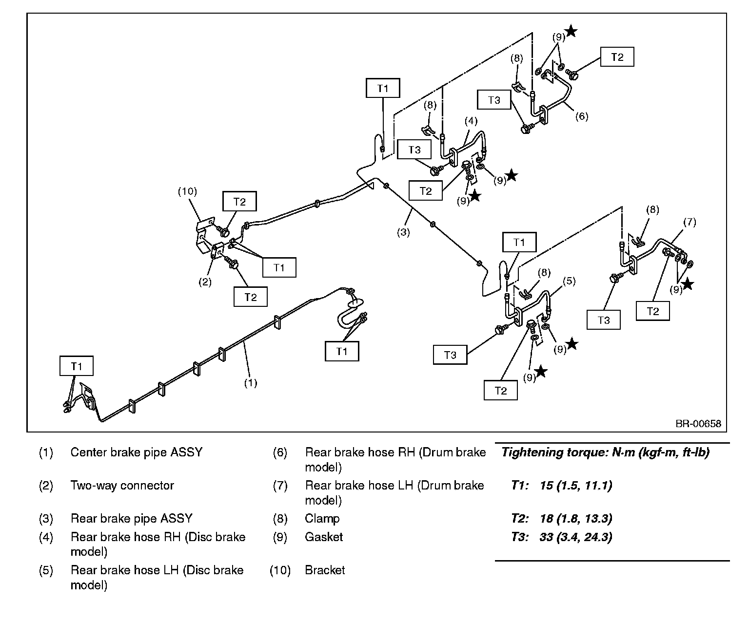 CENTER AND REAR BRAKE PIPES AND HOSES