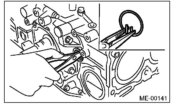 3) Insert an oil pan cutter blade between cylinder block-to-oil pan clearance and remove the oil pan.