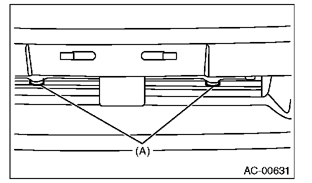 - Confirm that lower guide (A) of condenser fits into holes on radiator panel.