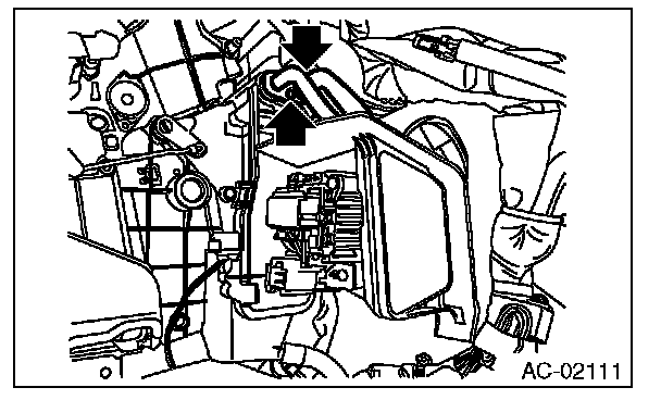 7. Remove the two bolts, and remove the evaporator pipe.