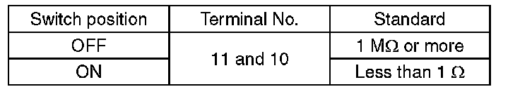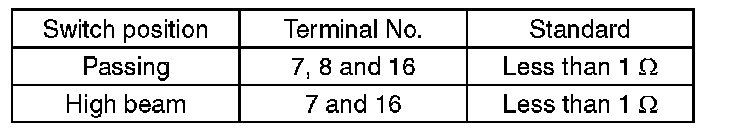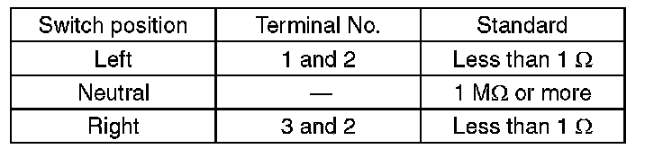 Measure the resistance between combination switch terminals.