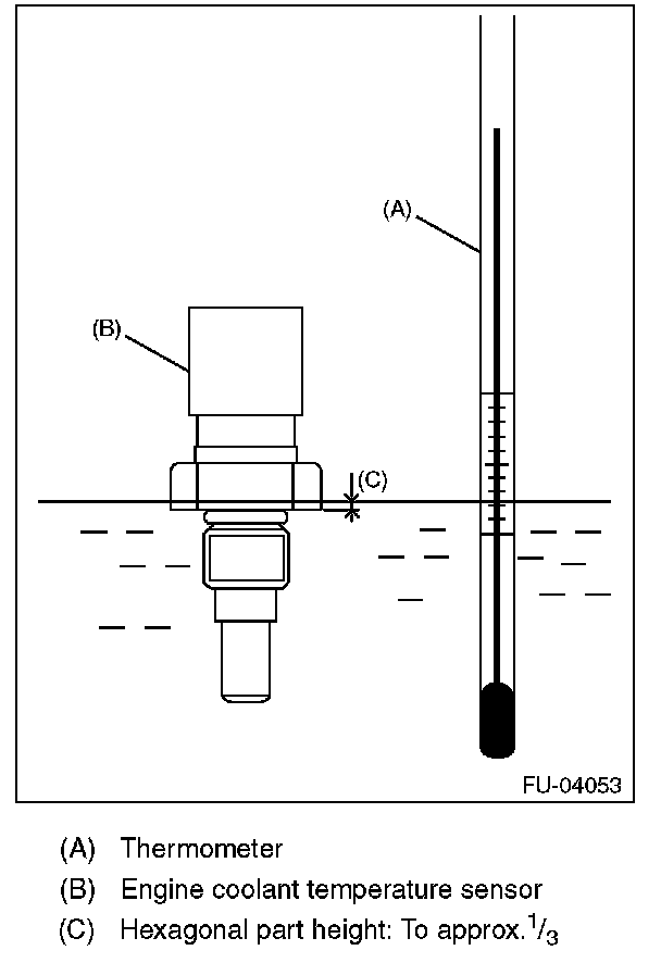 1. Immerse the engine coolant temperature sensor and a thermometer in water.