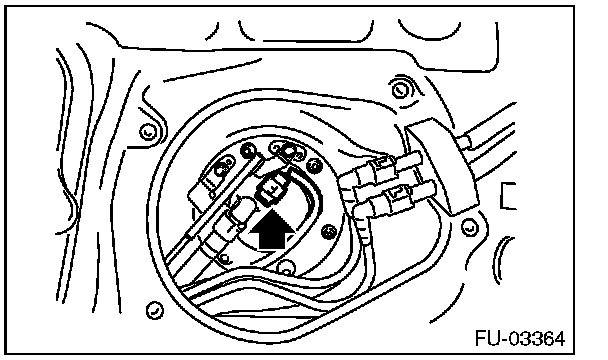 6. Disconnect the connector from the fuel sub level sensor.