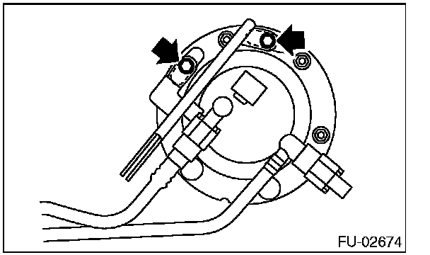 9. Remove the bolts and nuts which hold fuel sub level sensor to the fuel tank.