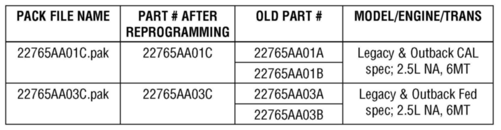 2010MY LEGACY AND OUTBACK 2.5L NA, 6MT