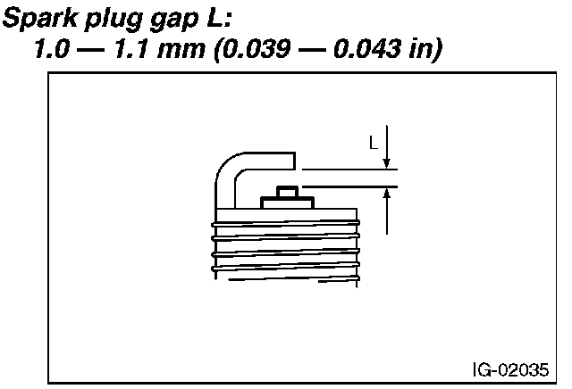 Clean spark plugs with a nylon brush, etc. Clean and remove the carbon or oxide deposits. If deposits are too stubborn, replace the spark plugs. After cleaning the spark plugs, measure the spark plug gap using a gap gauge.