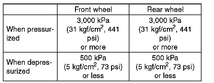 15) Read the values indicated on the pressure gauges and check if it is within specification. Depress the brake pedal and check that it is not abnormally hard, and tightness is normal.