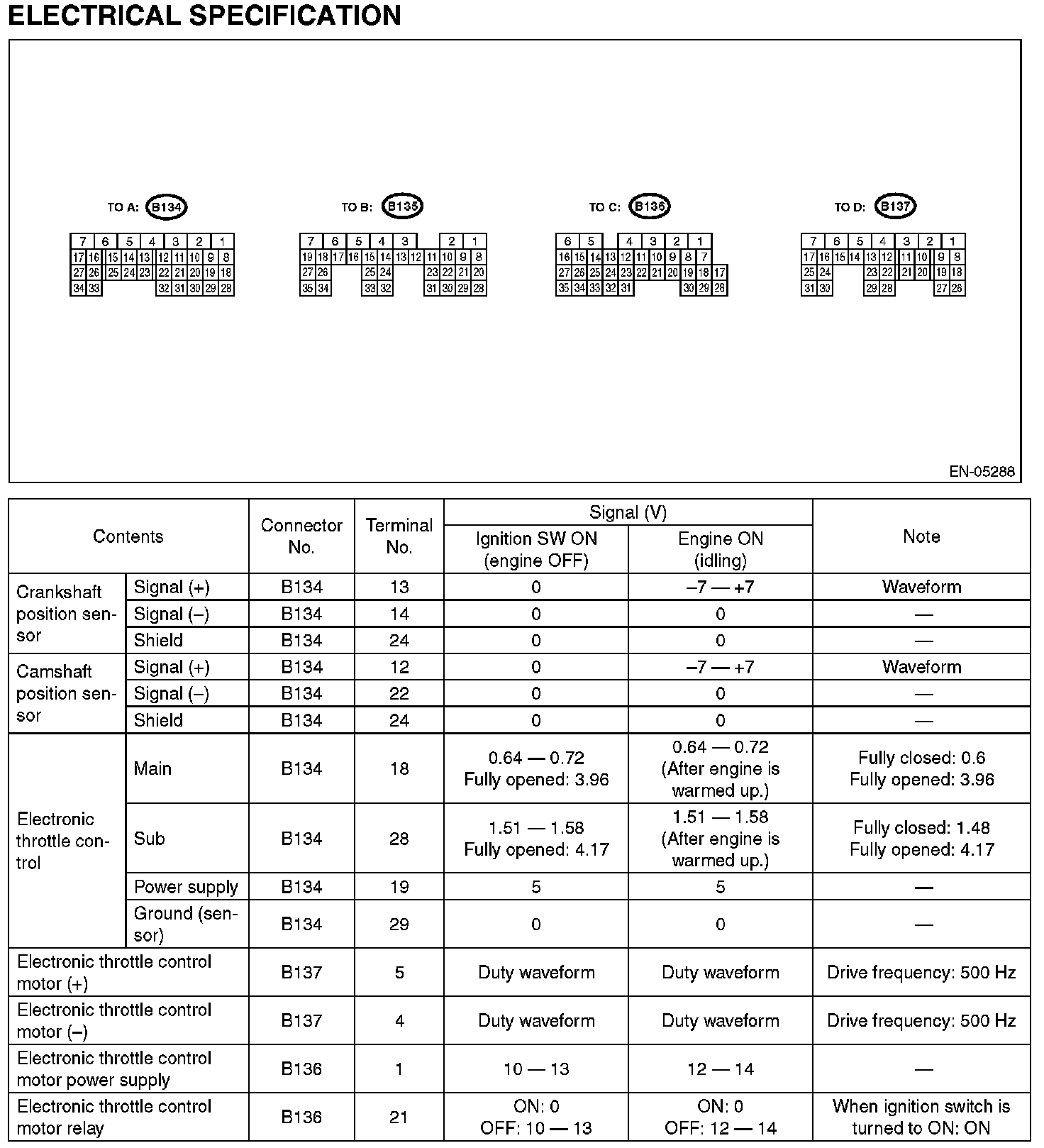 Engine Control Module (ECM) I/O SignalELECTRICAL SPECIFICATION