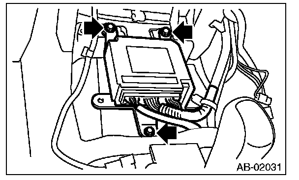 9. Remove the three bolts and remove airbag control module.