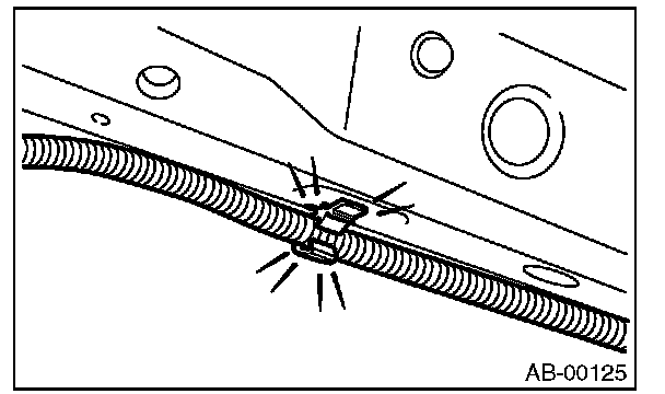 - Install the wiring harness securely with the specified clips to avoid interference or tangled with other parts.