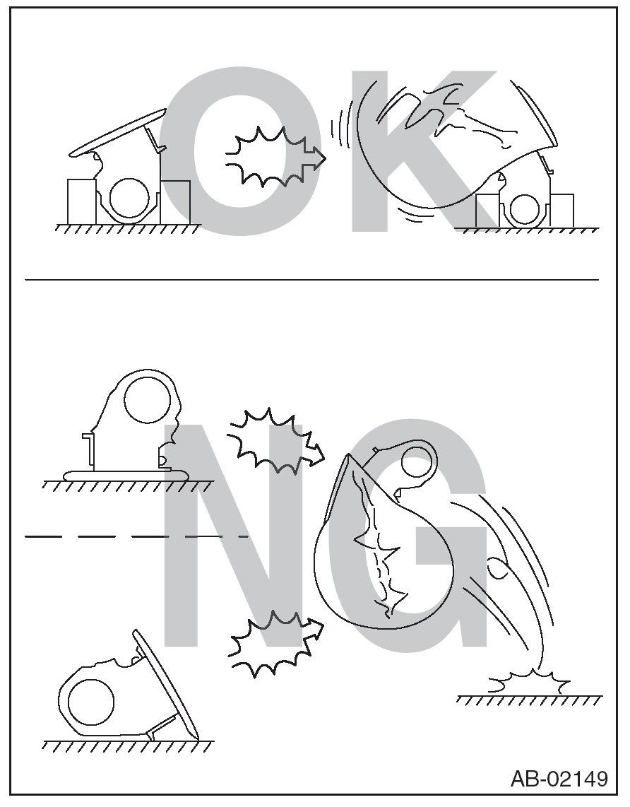 - When storing a removed airbag module, do not place with its pad side facing down. Do not place any objects on the airbag module. Do not pile up the airbag module. If the airbag inflates for some reason when an airbag module pad is touching other objects, it may cause serious accident.