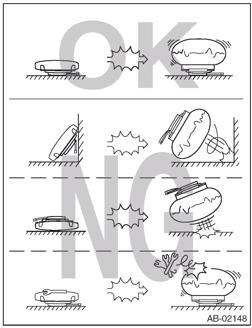 - After removal of each parts for airbag system, keep them with the pad facing upward on a dry, clean and flat surface without heat, light sources, moisture and dust.