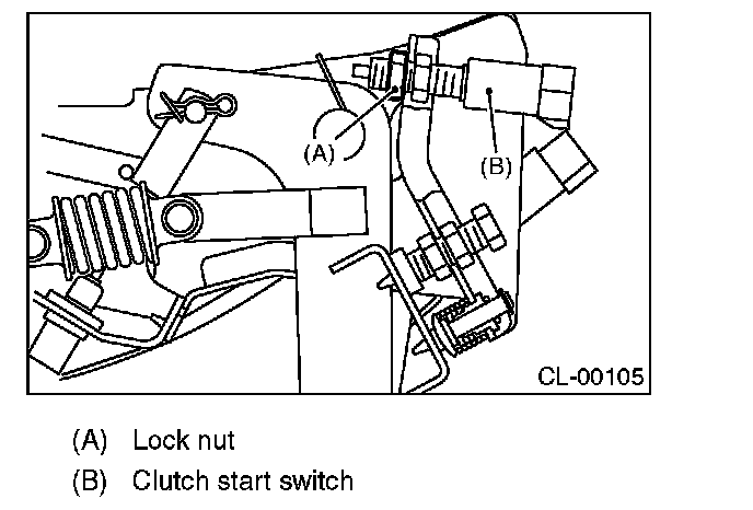 1) Loosen the lock nut of clutch start switch.